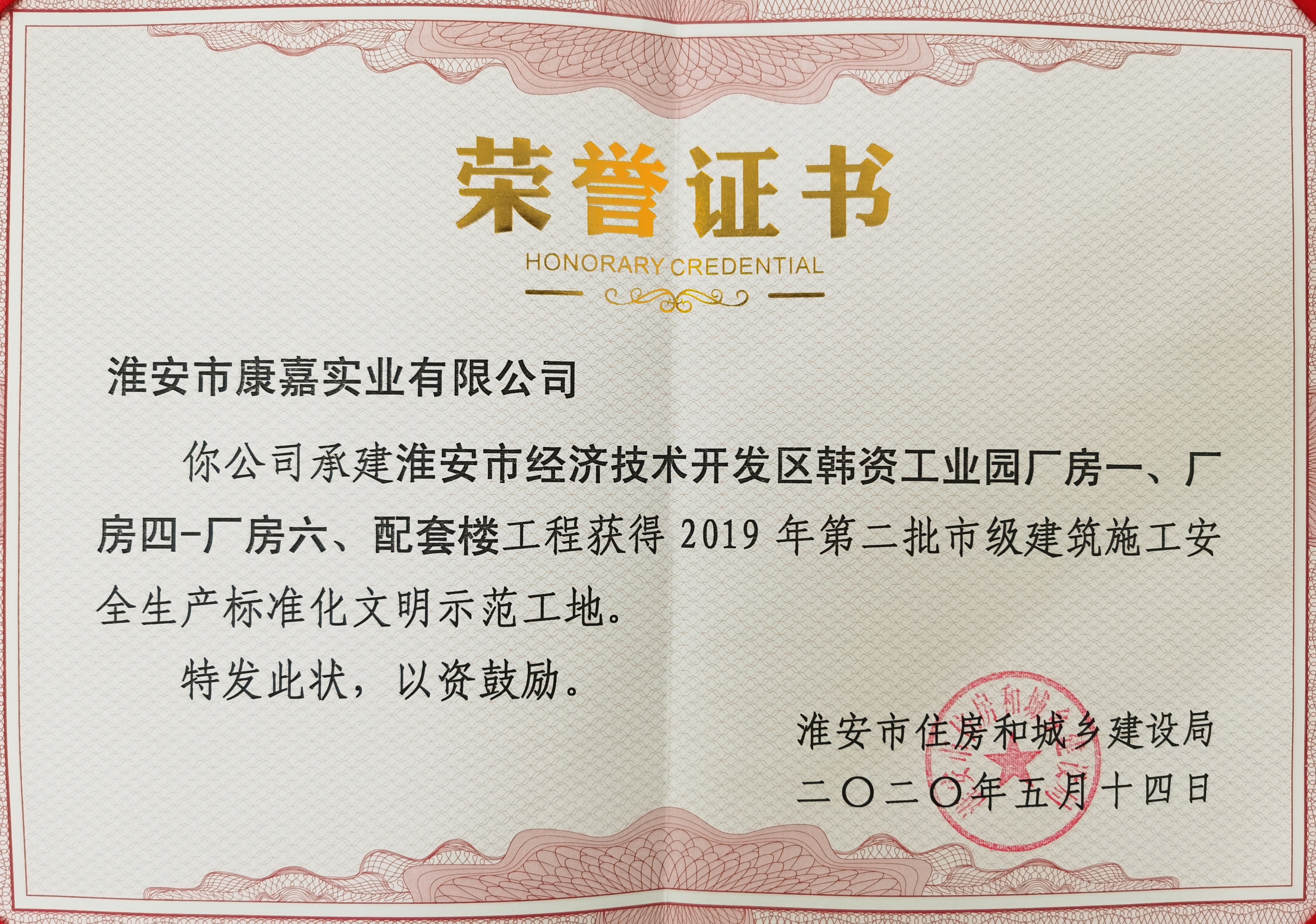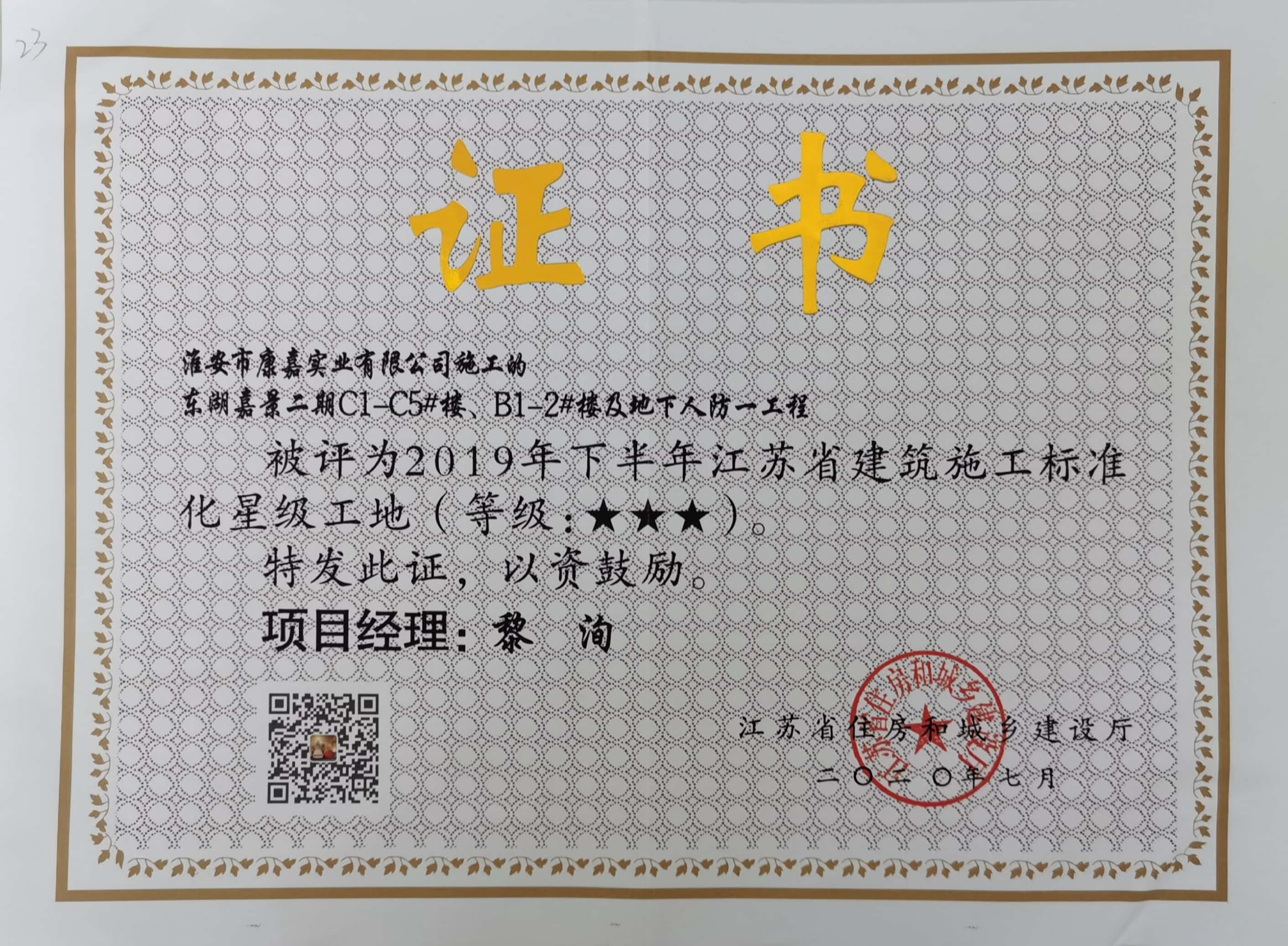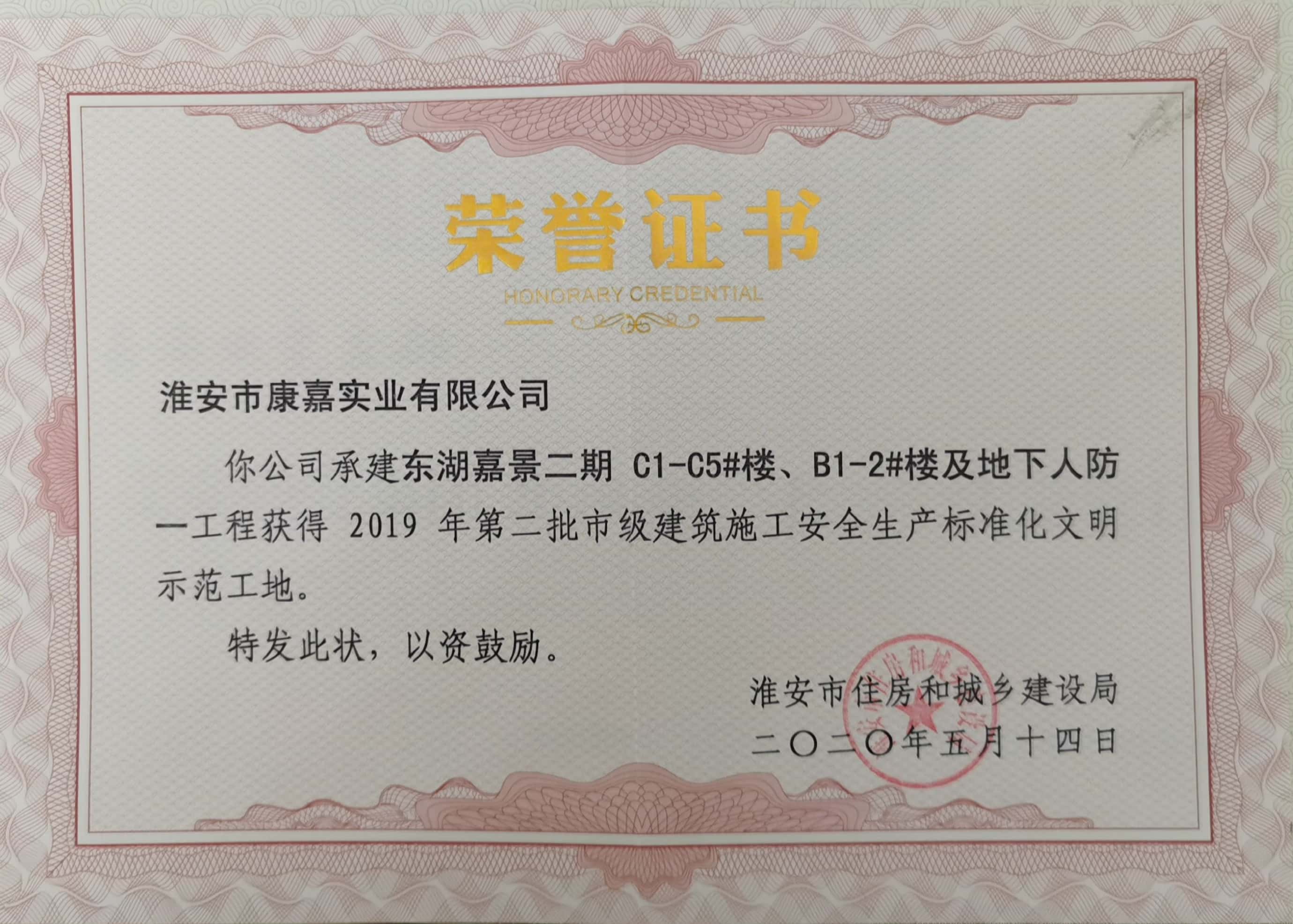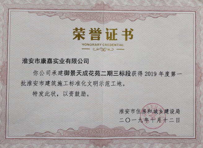市級標化文明示范工地榮譽