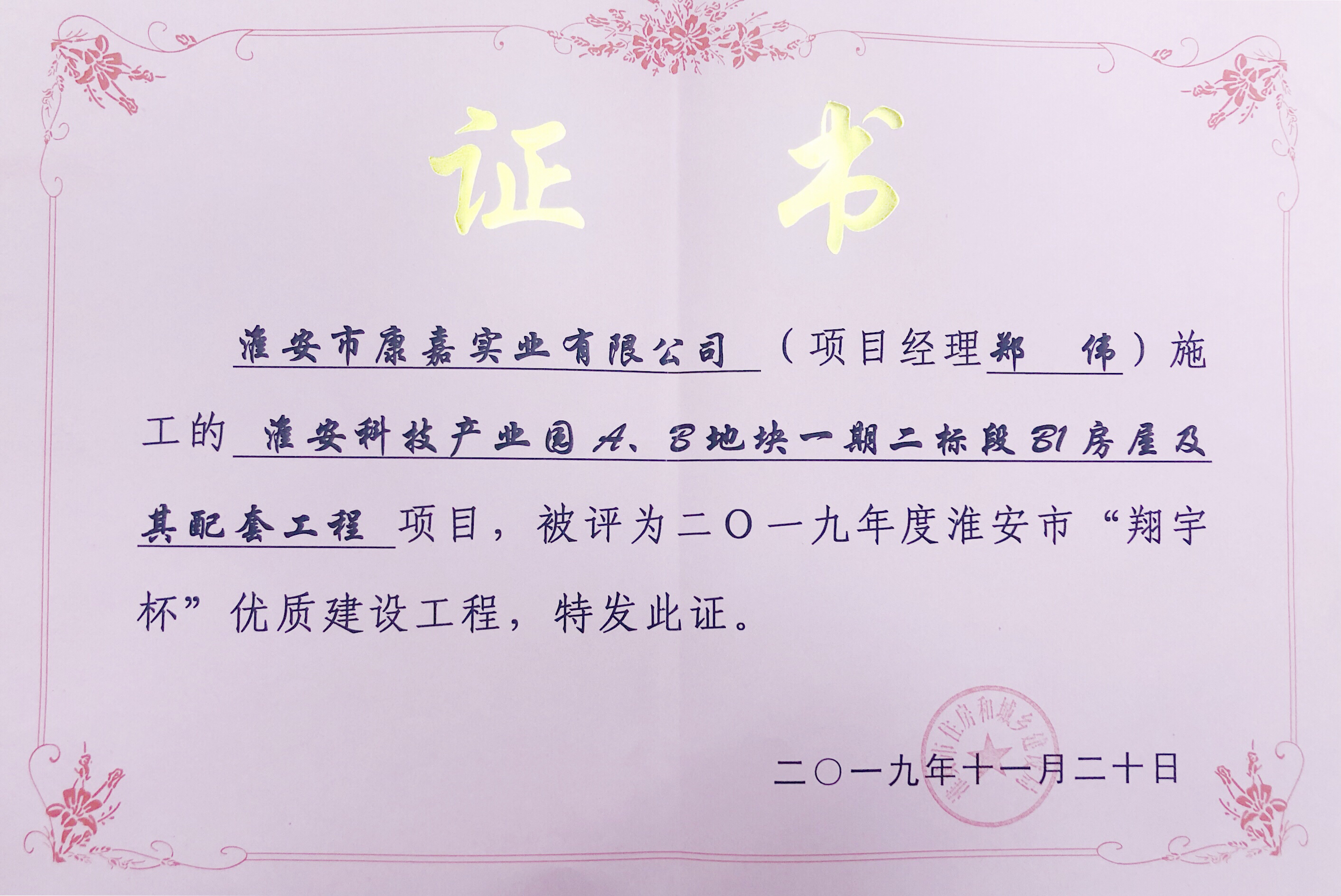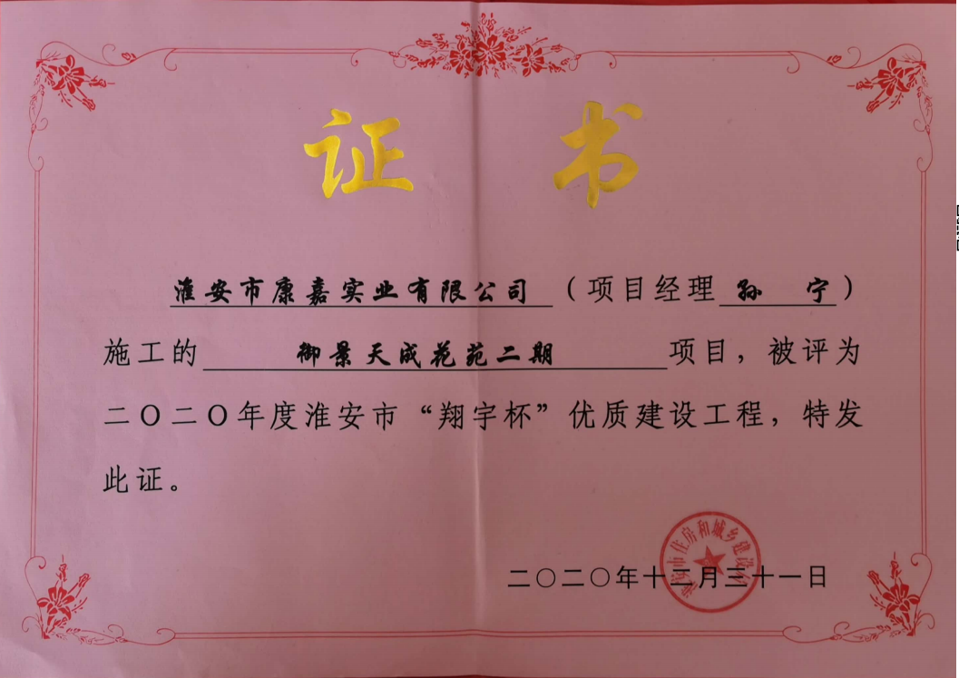 淮安市“翔宇杯”優(yōu)質(zhì)建設(shè)工程