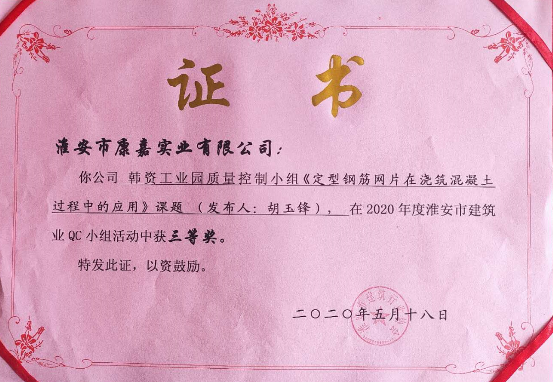 2020年淮安市建筑業(yè)QC小組活動三等獎
