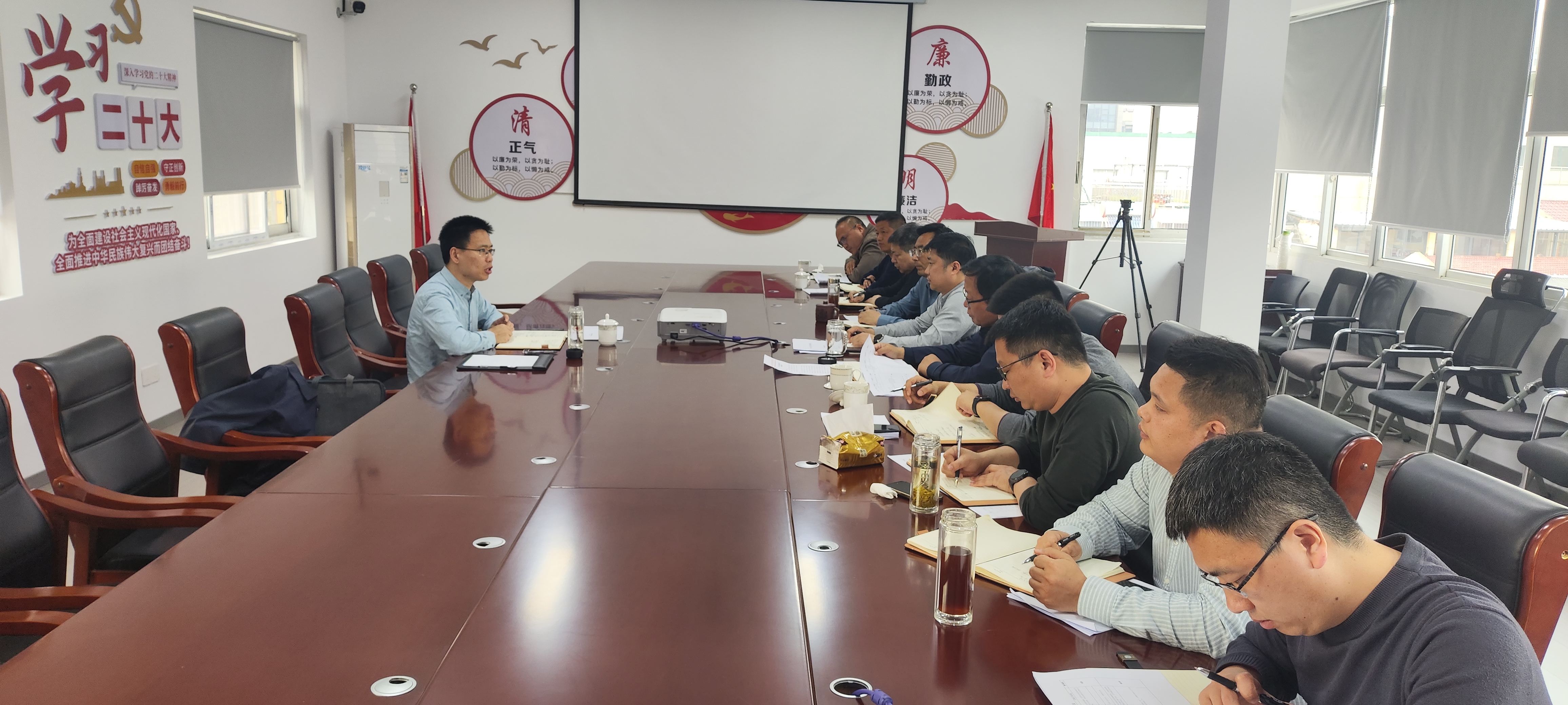 詳細(xì)介紹:按照集團(tuán)黨委的部署要求以及支部的工作安排,康嘉實業(yè)黨支部于5月28日上午組織召開黨紀(jì)學(xué)習(xí)專題會議,集團(tuán)分管領(lǐng)導(dǎo)陳毅、公司領(lǐng)導(dǎo)班子、支部全體黨員以及項目經(jīng)理參加了此次會議。 會上,支部紀(jì)律委員曹宇宣讀了淮開經(jīng)紀(jì)發(fā)〔2024〕5號——關(guān)于黨紀(jì)學(xué)習(xí)教育專項監(jiān)督檢查的通報,支部書記孟然帶領(lǐng)全體人員學(xué)習(xí)了《中國共產(chǎn)黨紀(jì)律處分條例》第六章至第八...
